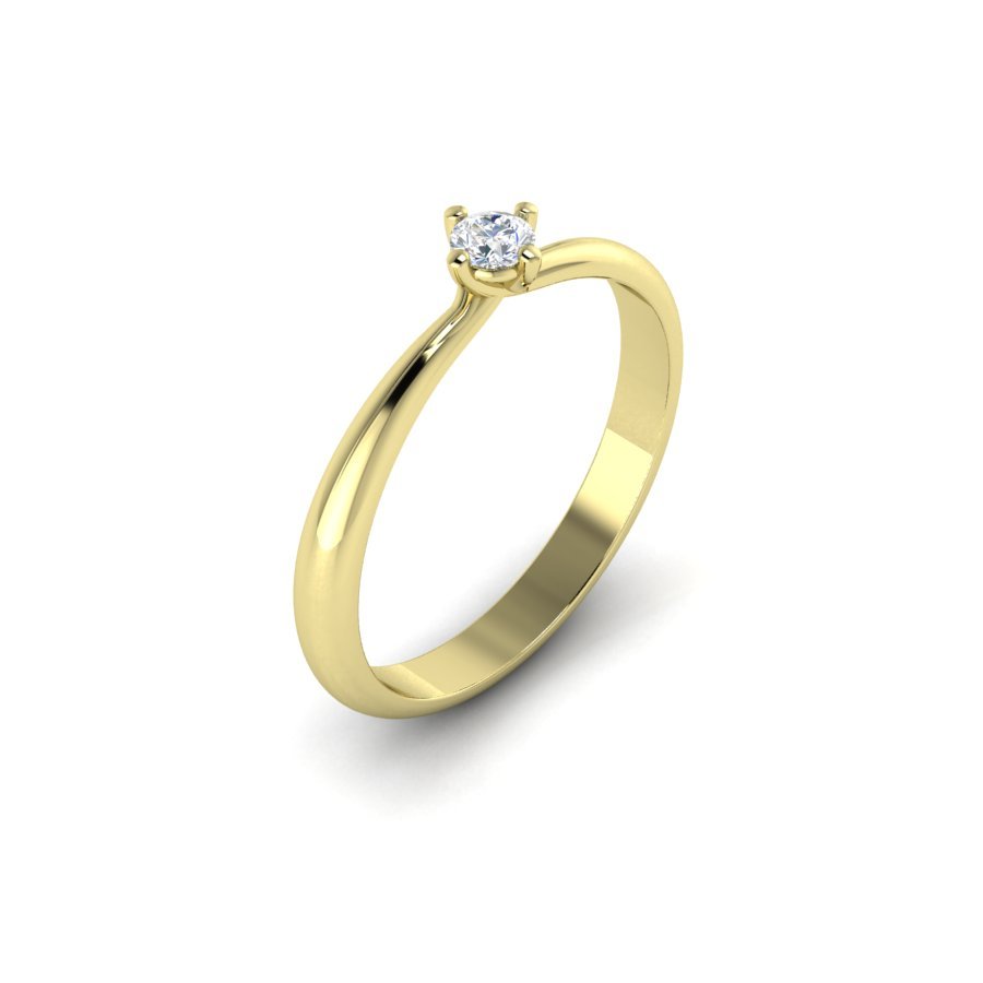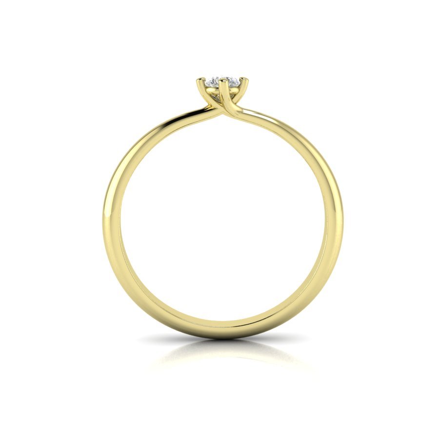 It features a single round brilliant-cut diamond set in a classic four-prong setting, which allows maximum light to enter the stone for enhanced sparkle. The band appears to be made of polished yellow gold, contributing to a timeless and traditional aesthetic. This design is perfect for someone who appreciates simplicity and classic style. Would you like more details about the materials, carat weight, or customization options?